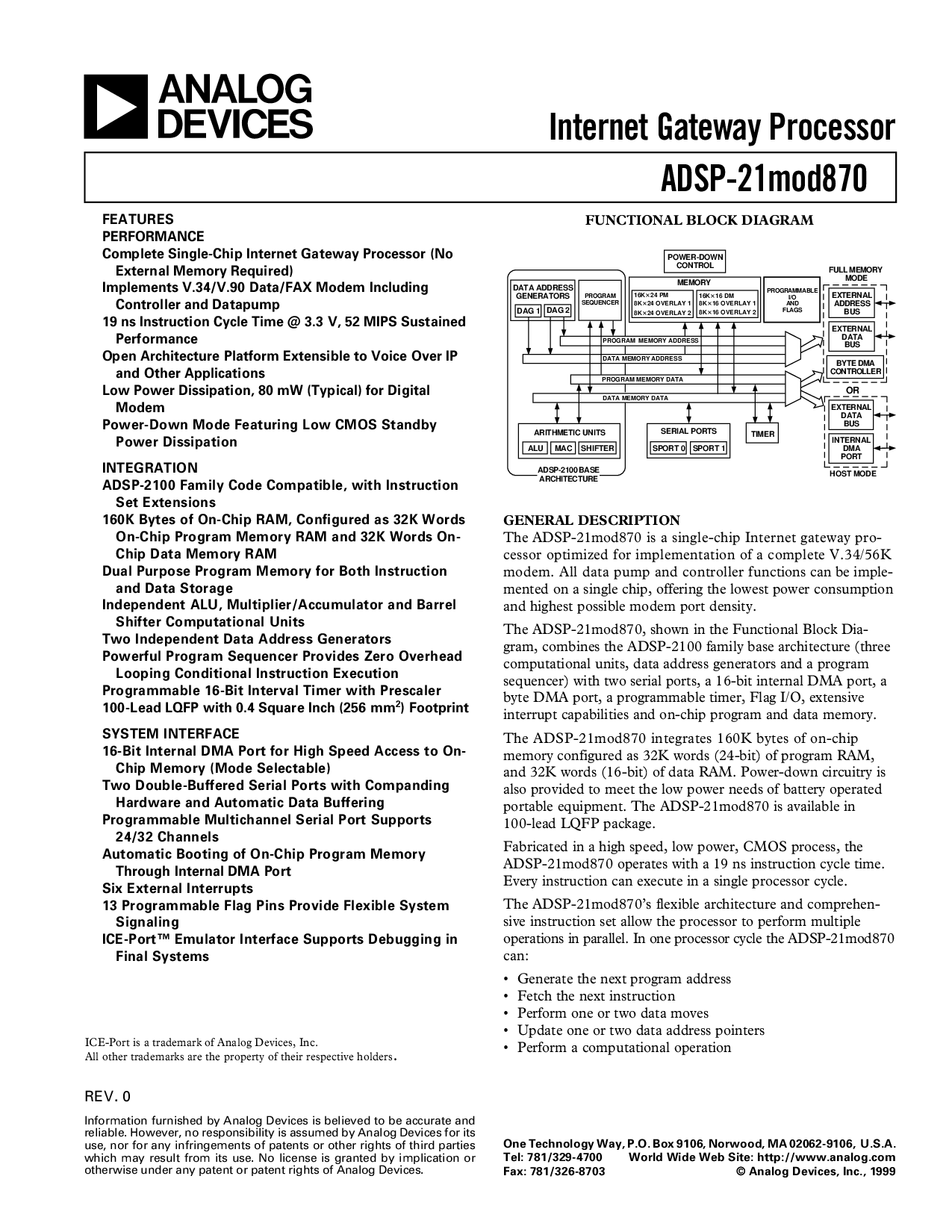 adsp-21mod870 操作 与 一个 19 ns 说明书 循环 时间.