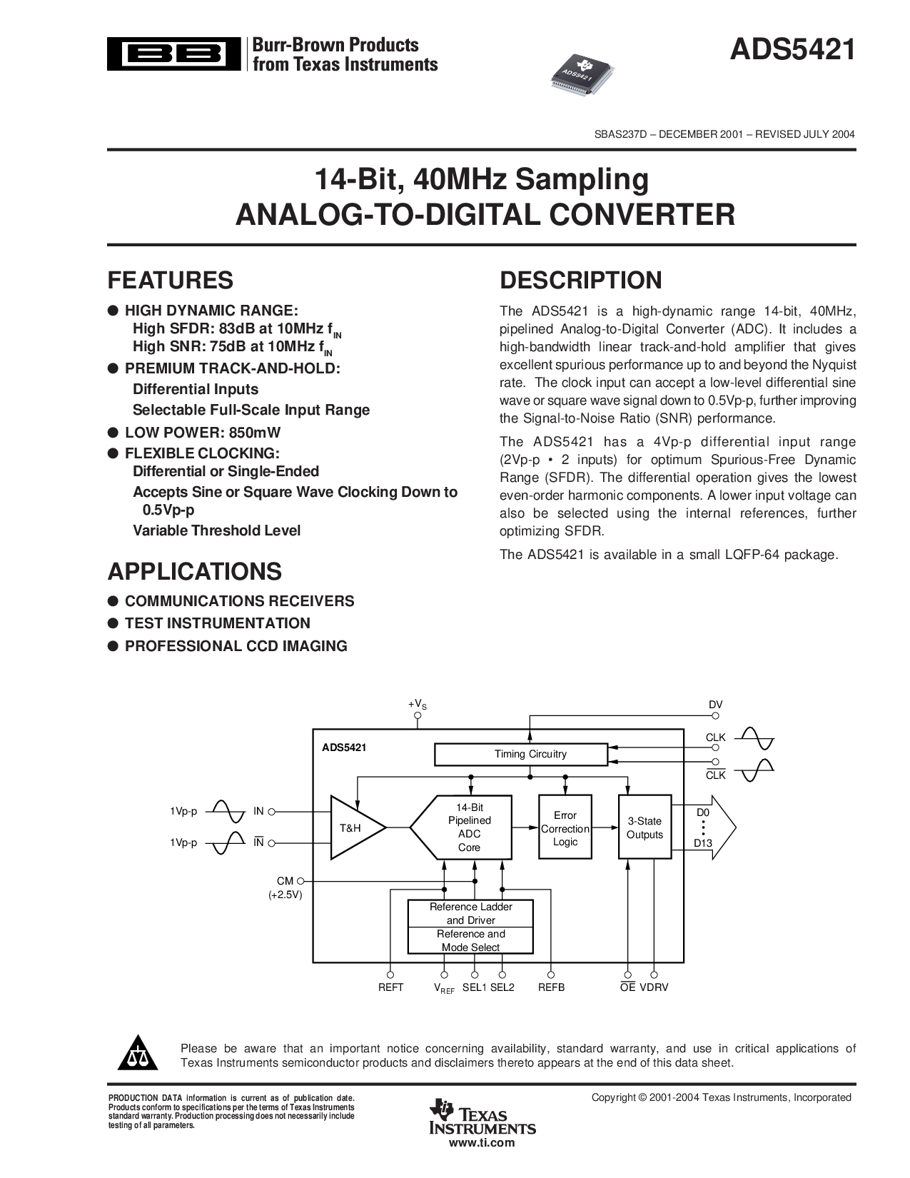 这 ads5421 是 一个 高动态 范围 14-有点, 40mhz,