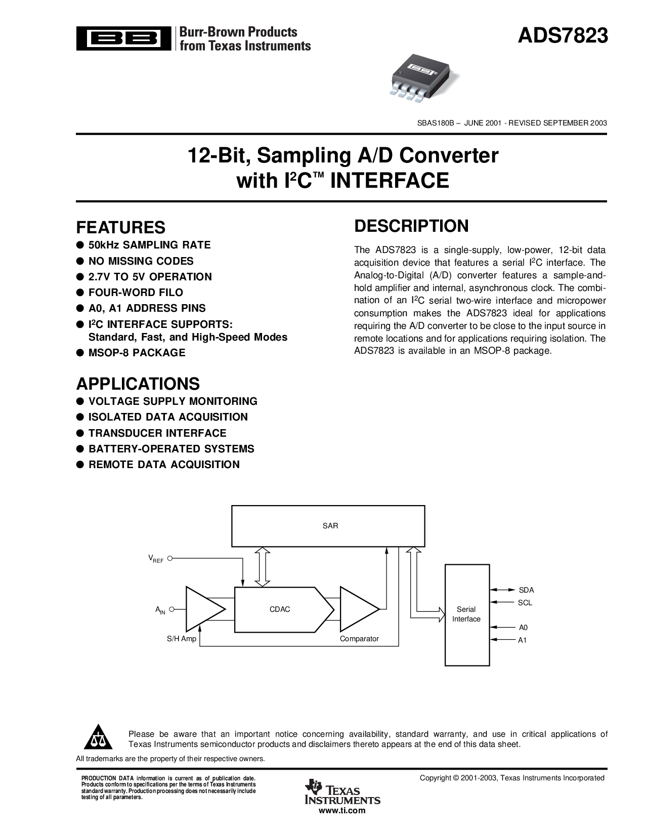 sbas180b – 六月 2001 - 修订 九月 2003