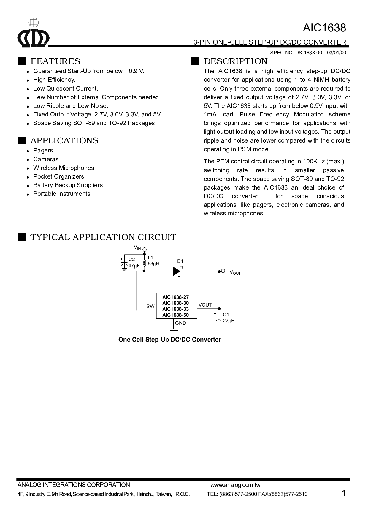 5v. 这 aic1638 开始 向上 从 下面 0.9v 输入 与