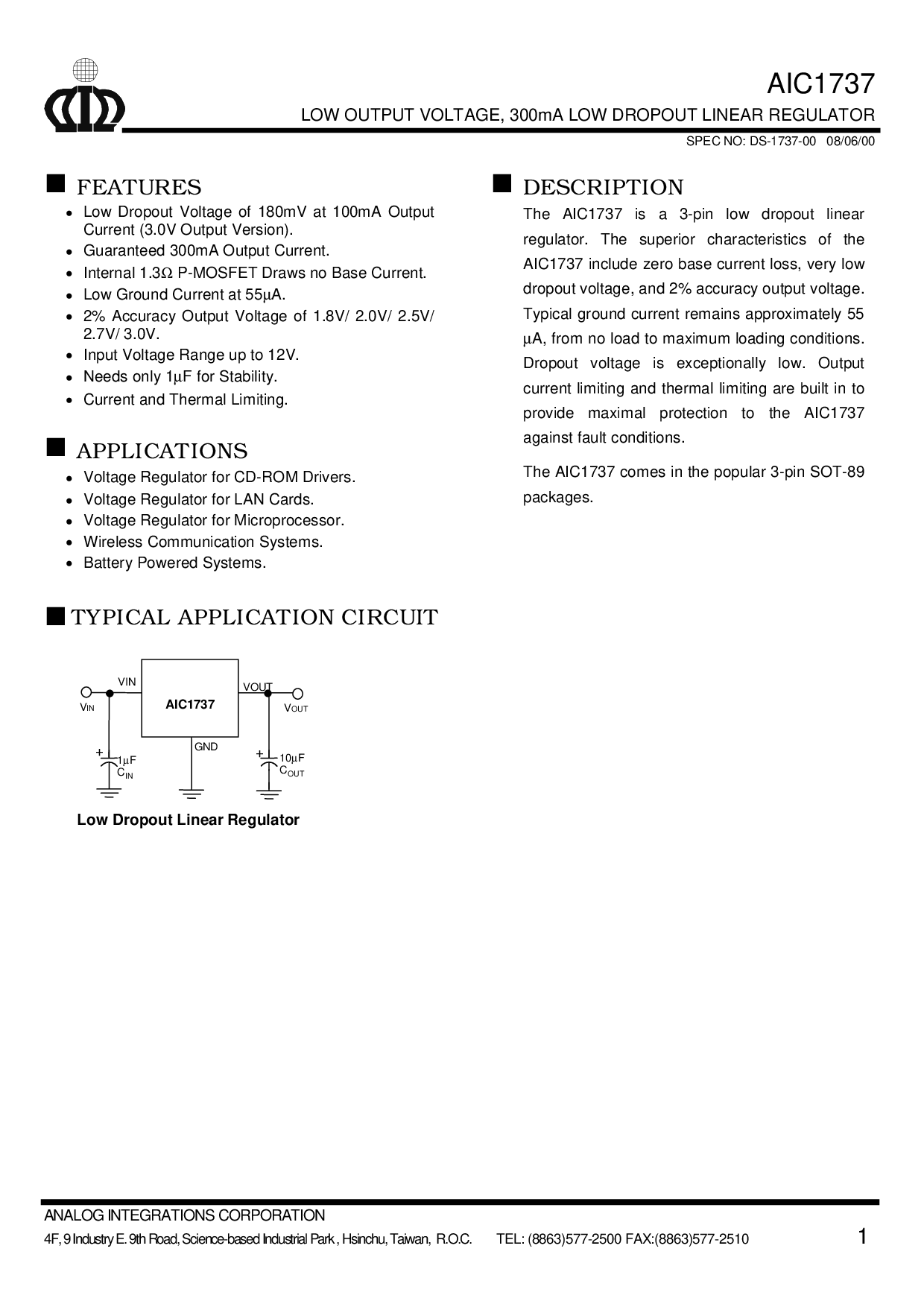 这 aic1737 来 入点 这 受欢迎 3-管脚 sot-89