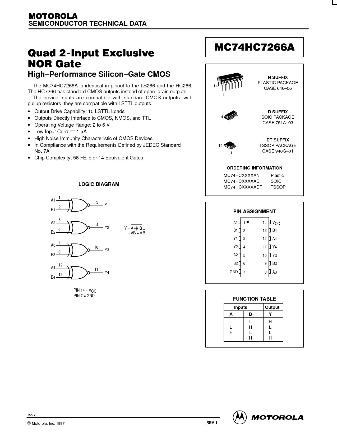 这 mc74hc7266a 是 相同 入点 引出线 至 这 ls266 和 这 hc266.