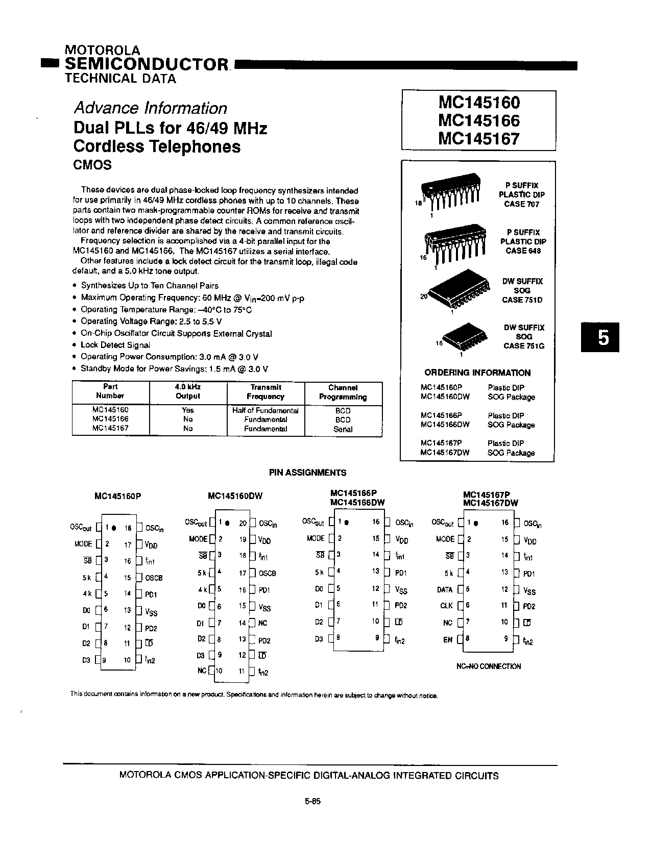 Dual PLLs for 46/49 MHz Cordless Telephones