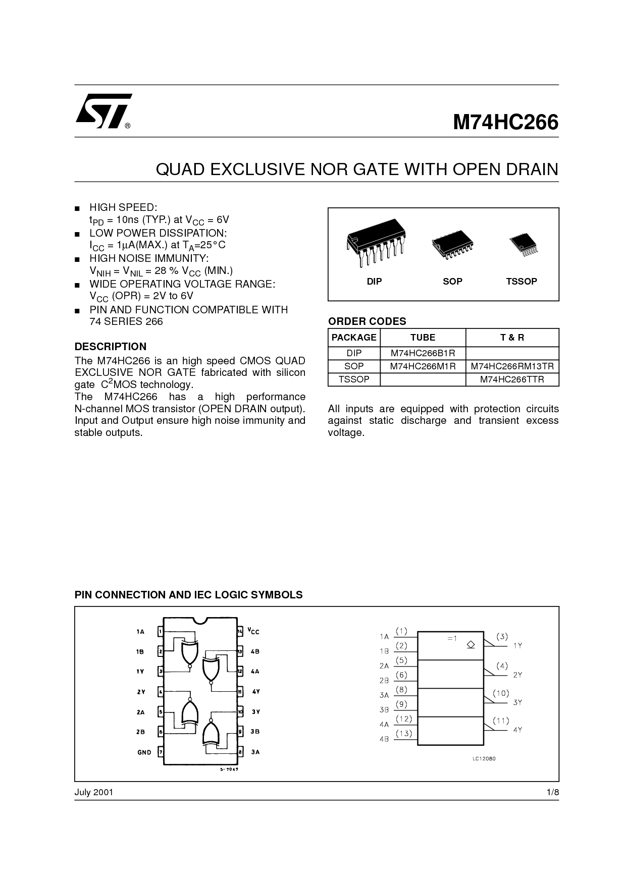 这 m74hc266 是 一个 高 速度 cmos 四边形