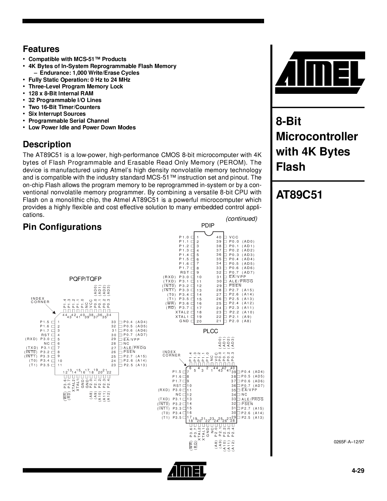浏览型号AT89C51-12QI的Datasheet PDF文件第4页