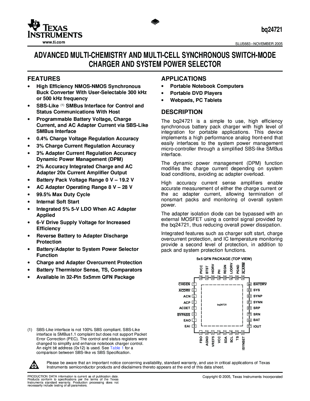 ADVANCED MULTI-CHEMISTRY AND MULTI-CELL SYNCHRONOUS SWITCH-MODE CHARGER AND SYSTEM POWER SELECTOR