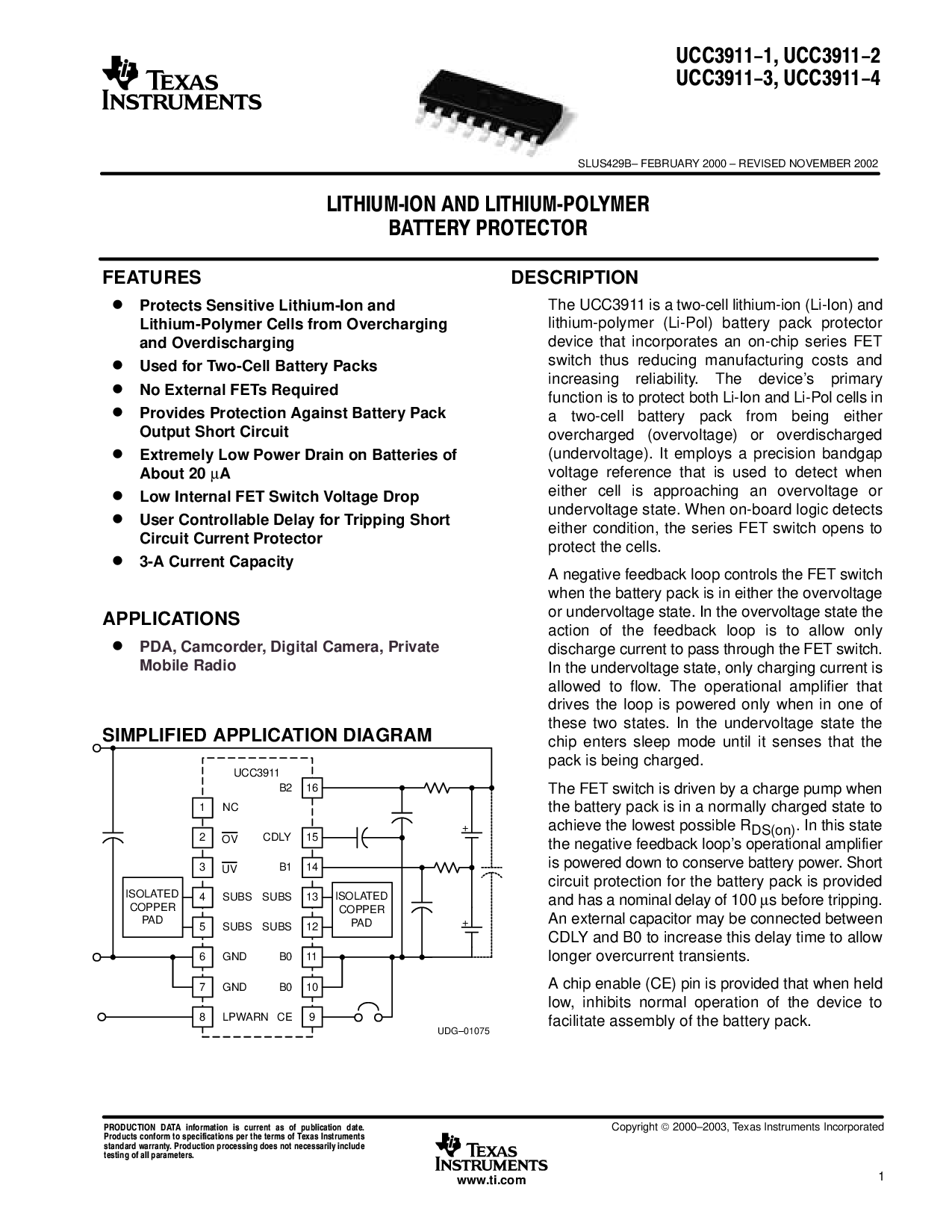 这 ucc3911 是 一个 双电池 锂离子 (李-离子) 和
