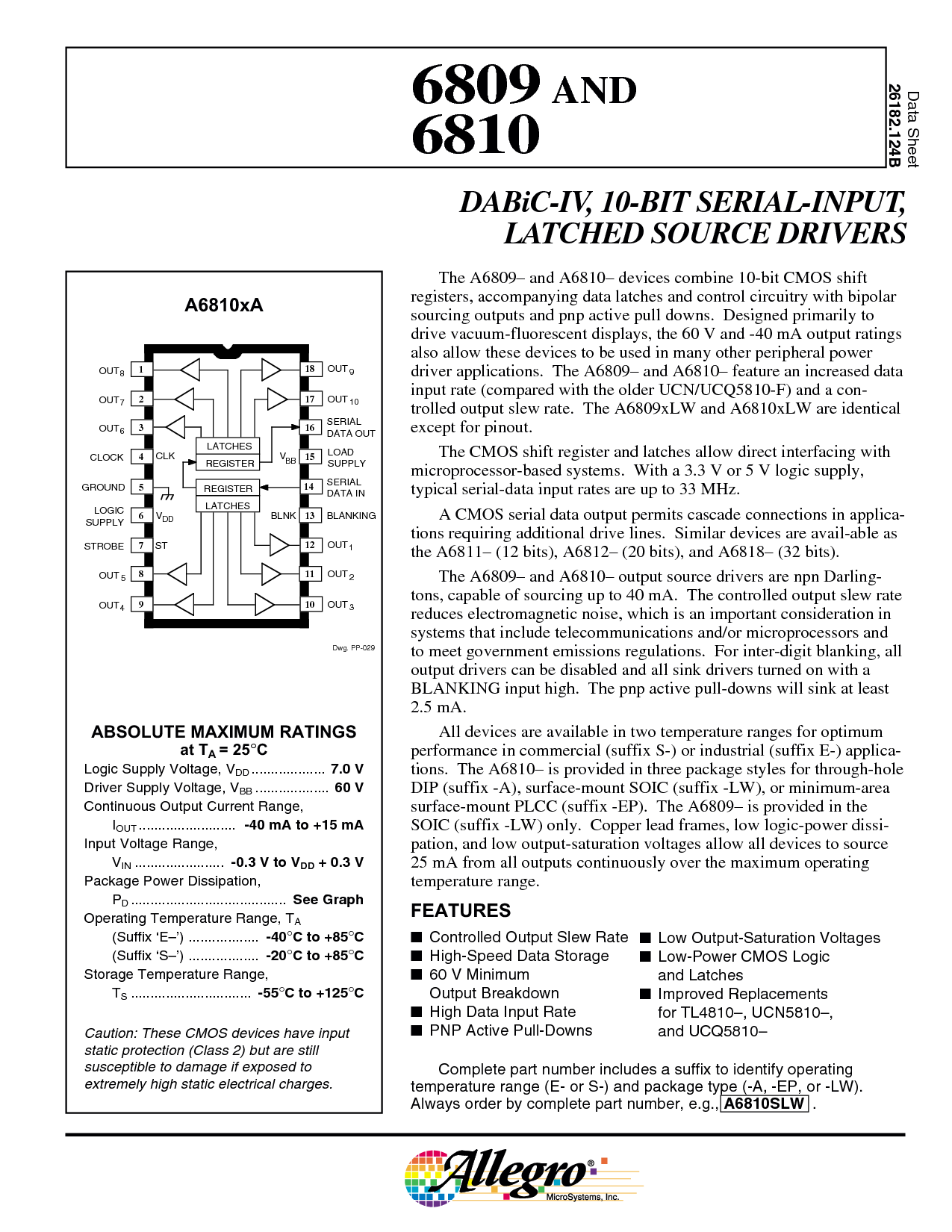 这 a6809– 和 a6810– 输出 来源 驱动程序 是 npn darling-