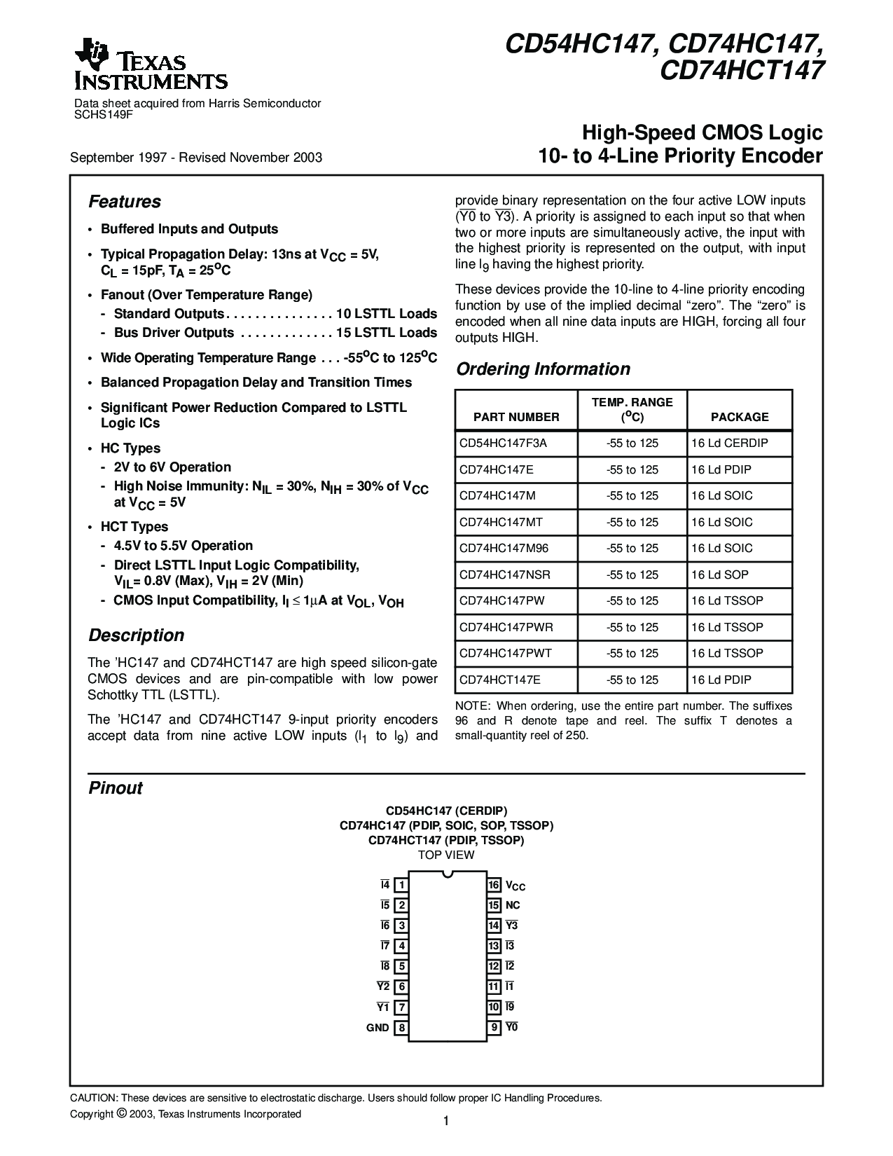 浏览型号CD74HC147PWT的Datasheet PDF文件第3页