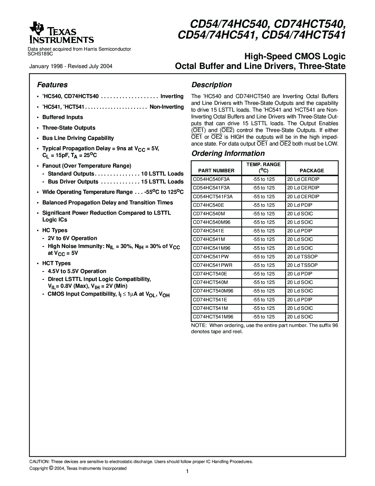 CD54HC541F3A -55 至 125 20 ld cerdip