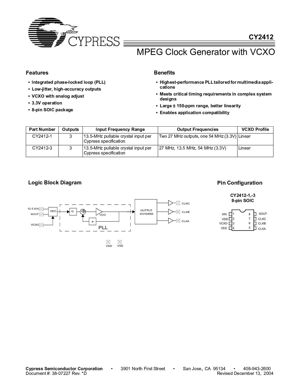 浏览型号CY2412SXC-1的Datasheet PDF文件第3页