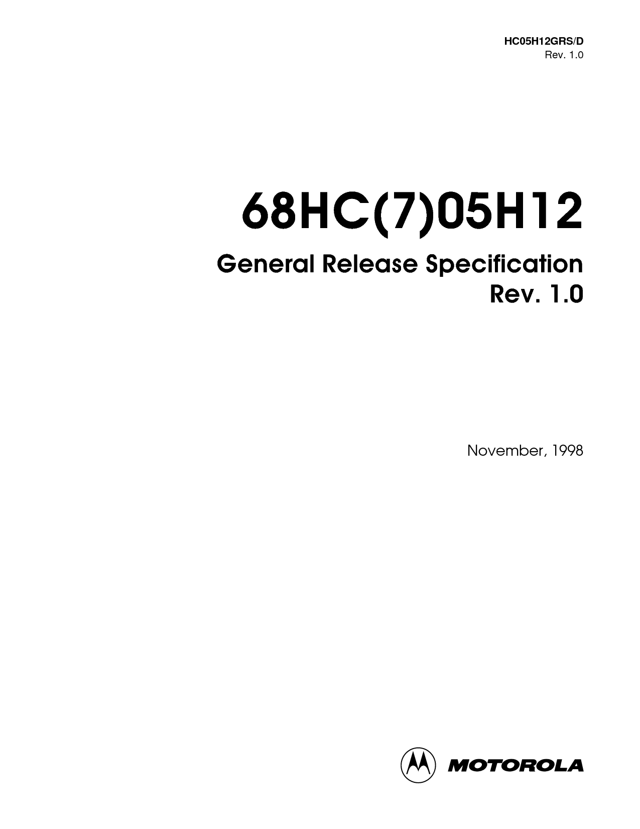 hc05h12grs/d rev. 1.0 非-disclosure 协议 必填项 68hc(7)05h12 概述 释放 规格 rev. 1.0 十一月, 1998 | |