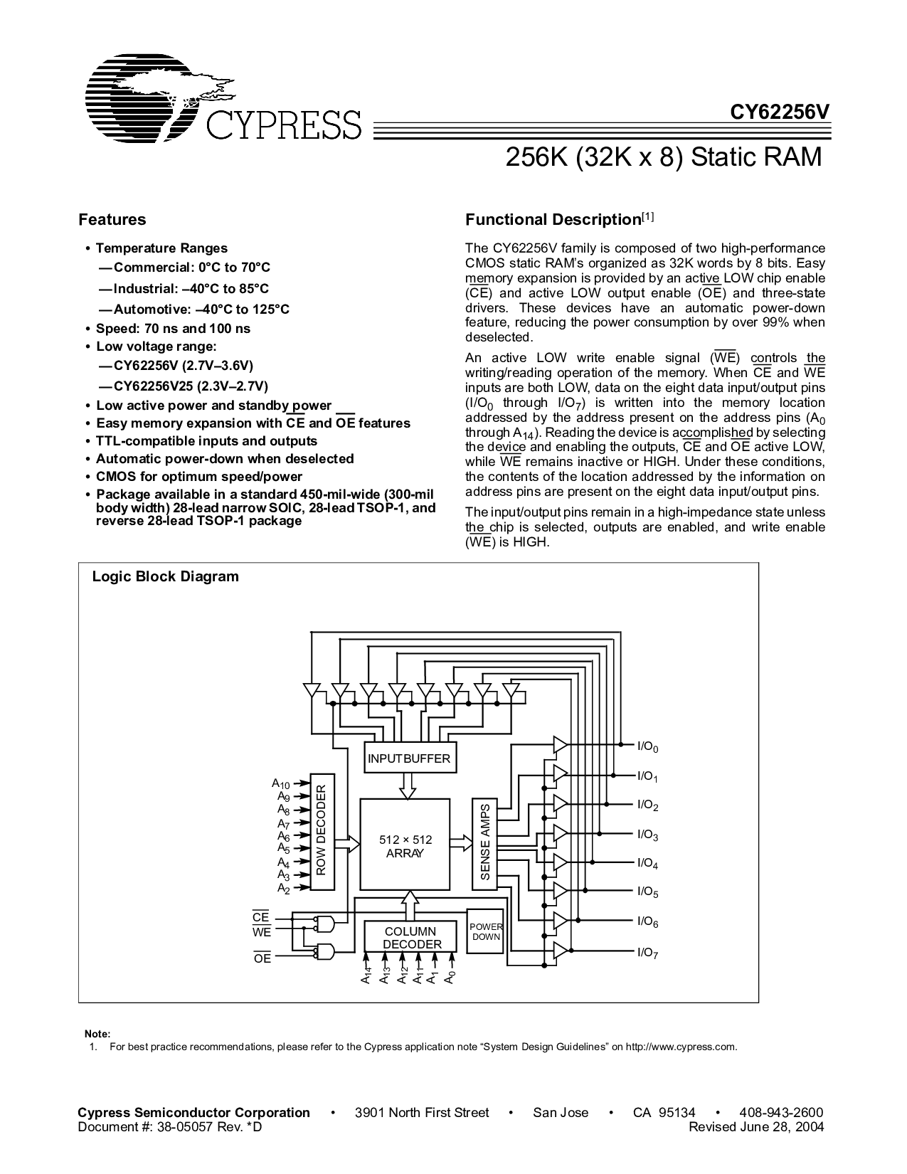 文件 #: 38-05057 rev. *d 修订 六月 28, 2004