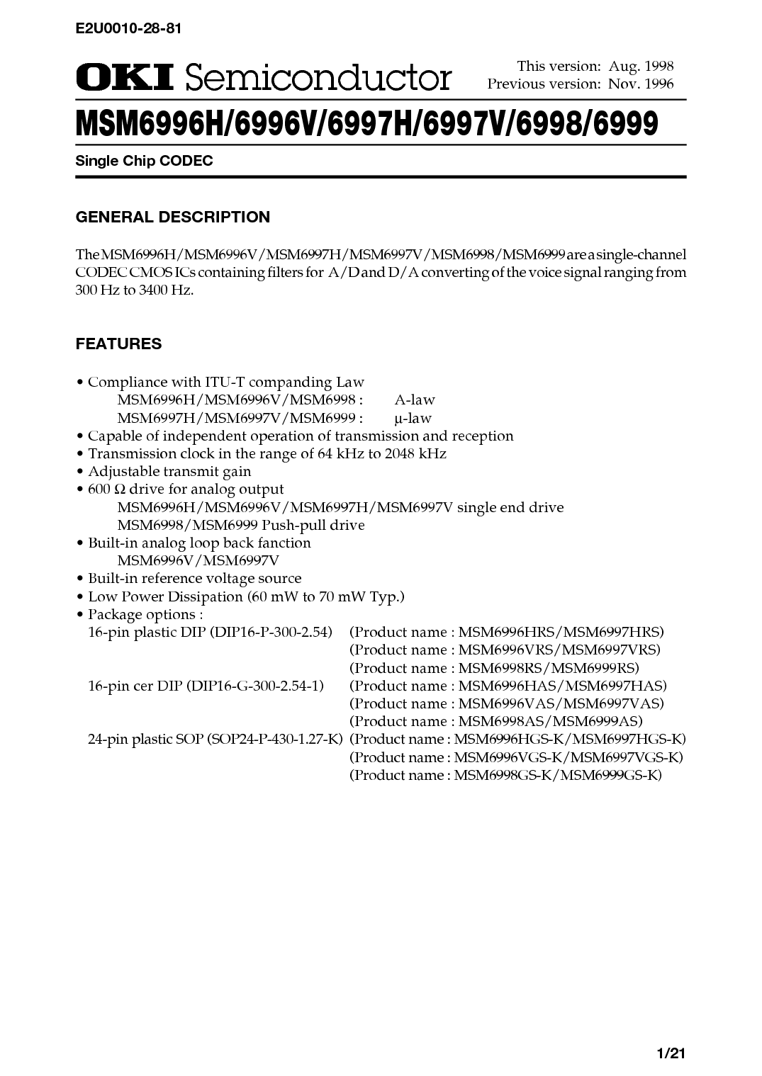 (产品 姓名 : msm6996vrs/msm6997vrs)