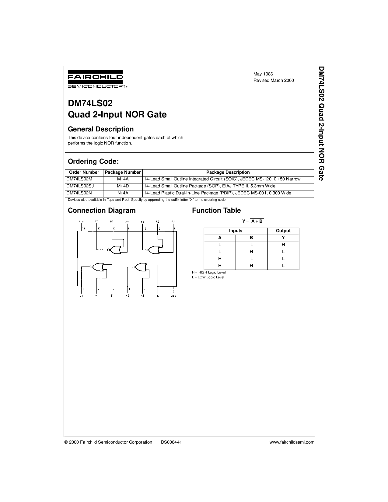 DM74LS02M M14A 14-铅 小 大纲 综合 电路 (soic), 电子元件工业联合会 ms-120, 0.150 窄