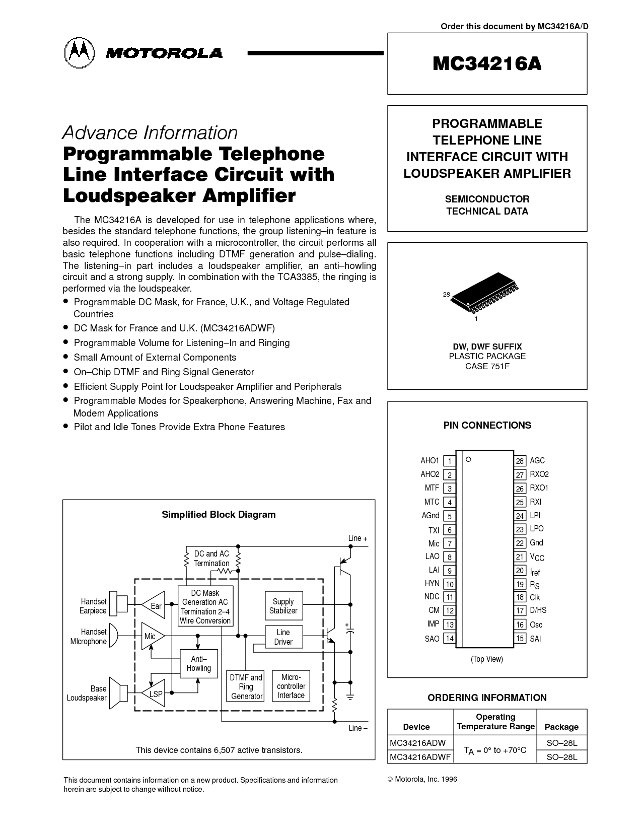 这mc34216a 是 已开发 用于使用 入点 电话 应用程序 在哪里,