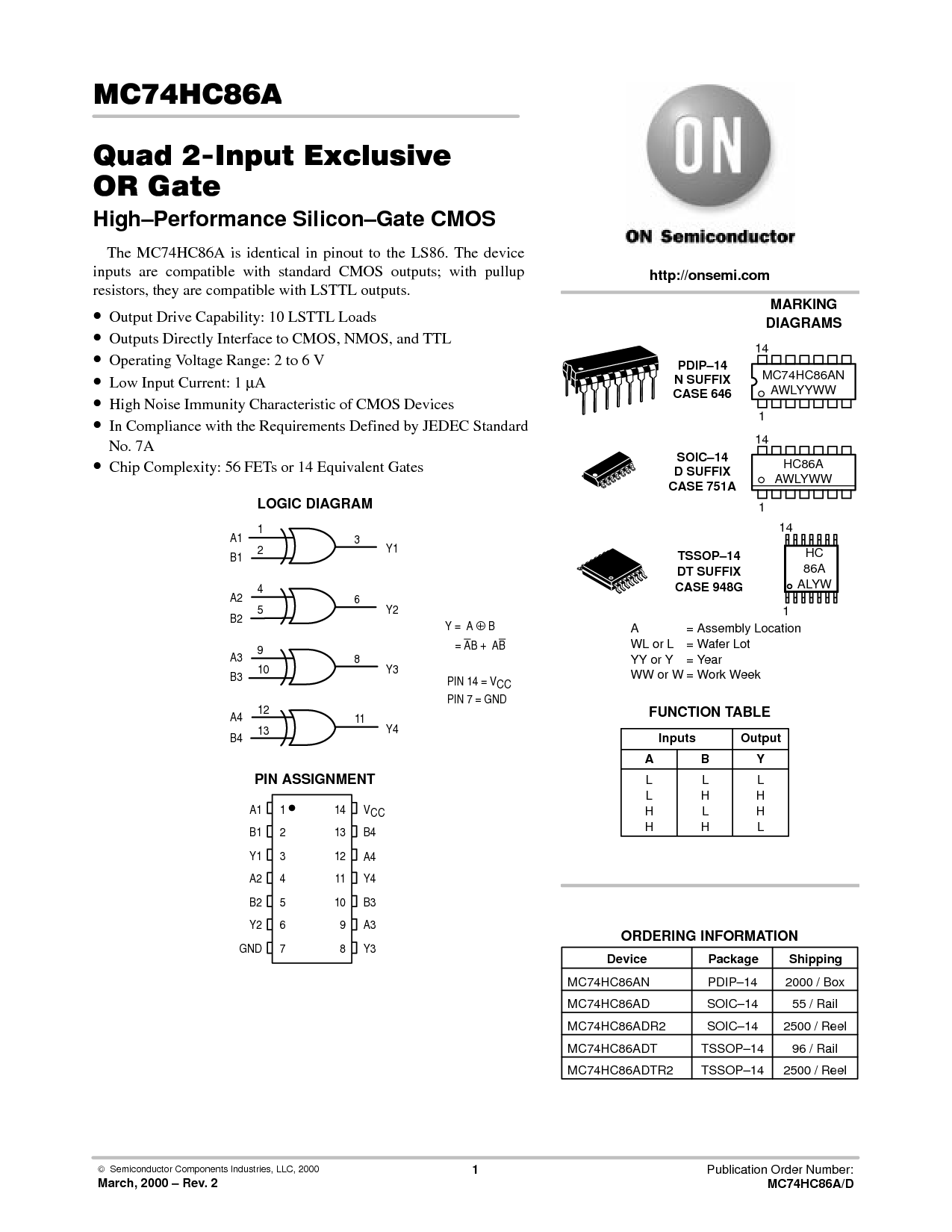 MC74HC86ADR2 SOIC–14 2500 / 卷轴