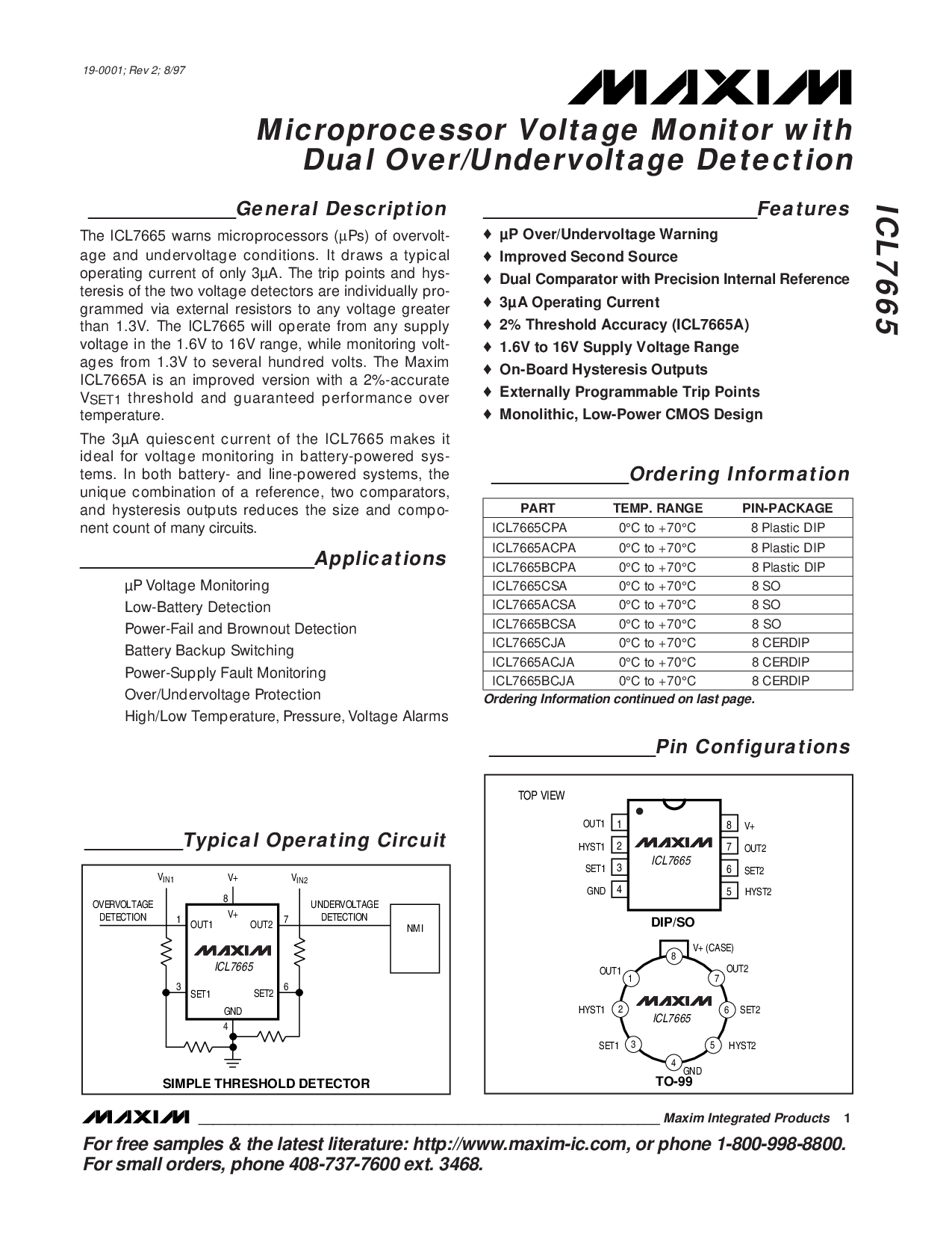 用于 免费 样品 &放大器; 这 最新 文学: http://www.马克西姆-集成电路.com, 或 电话 1-800-998-8800.