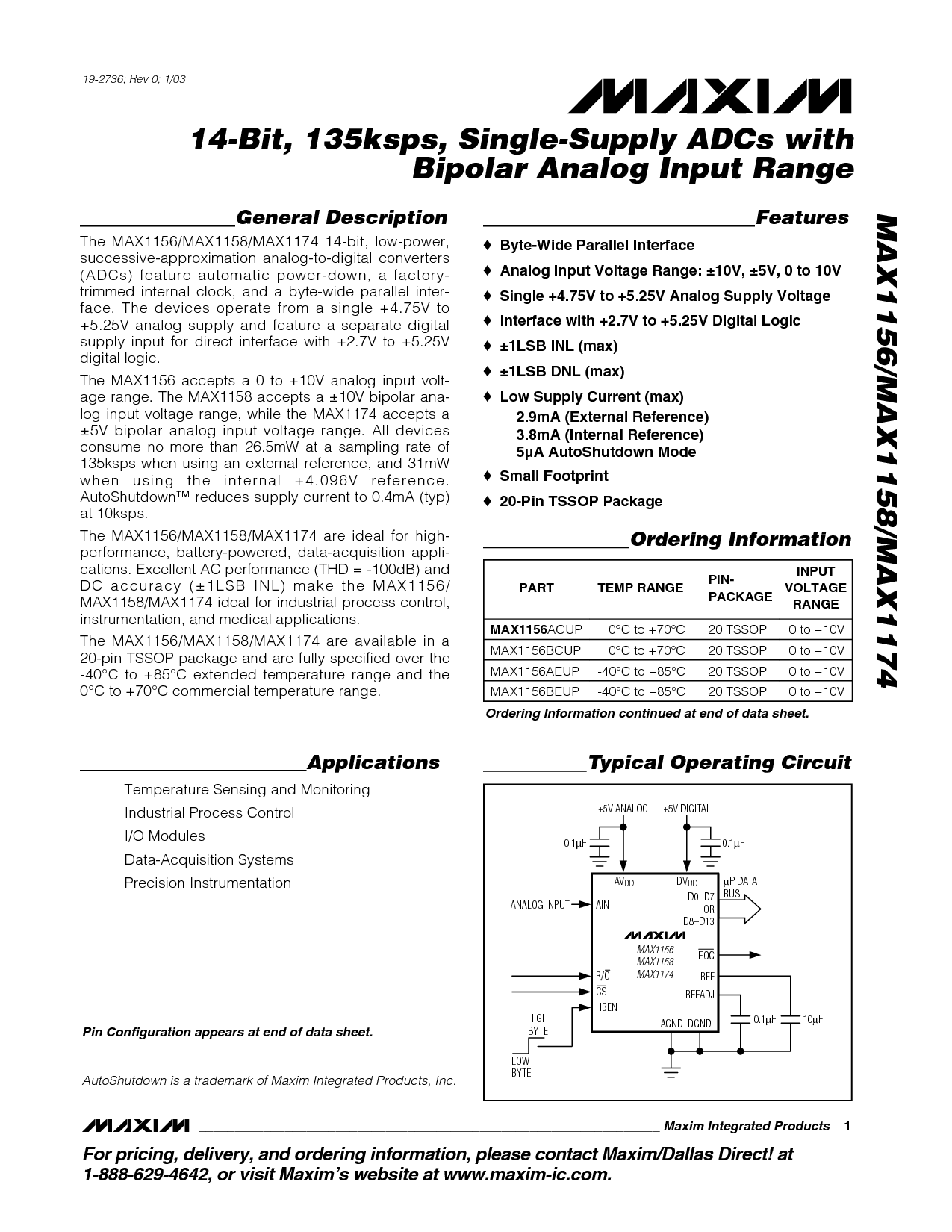 这 max1156/max1158/max1174 14-有点, 低-电源,