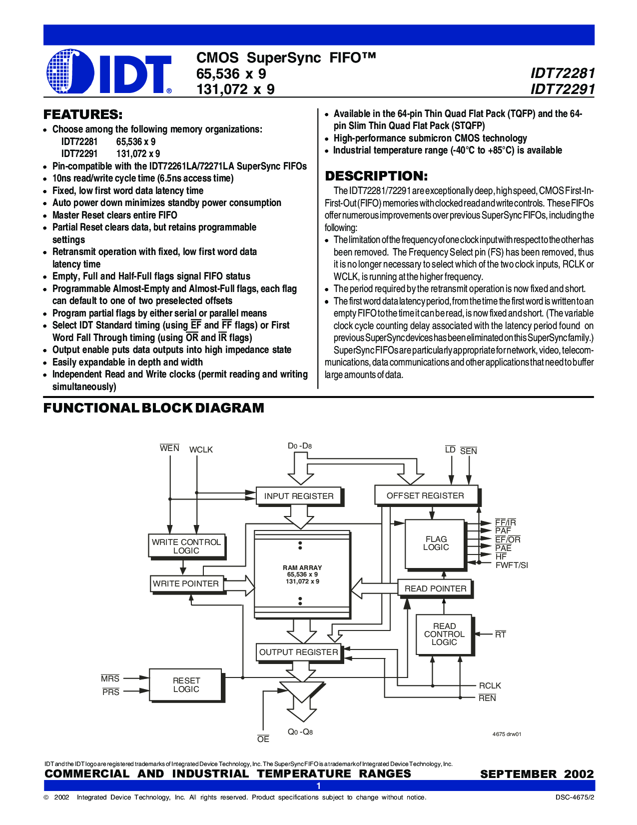 浏览型号IDT72281L20PFI的Datasheet PDF文件第2页