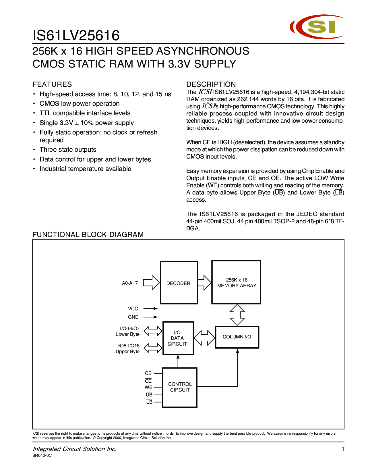 浏览型号IS61LV25616-8K的Datasheet PDF文件第2页