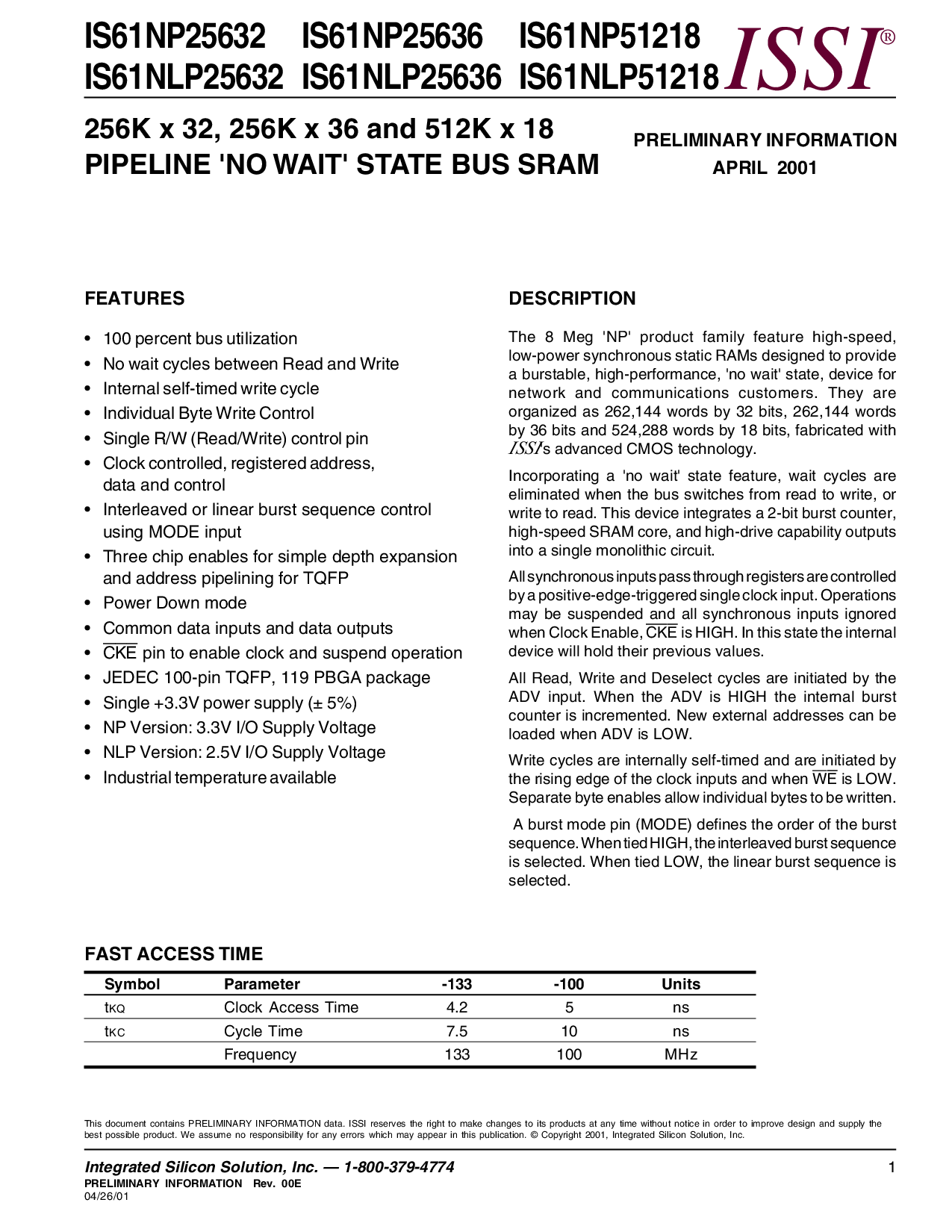 IS61NLP25632 IS61NLP25636 IS61NLP51218