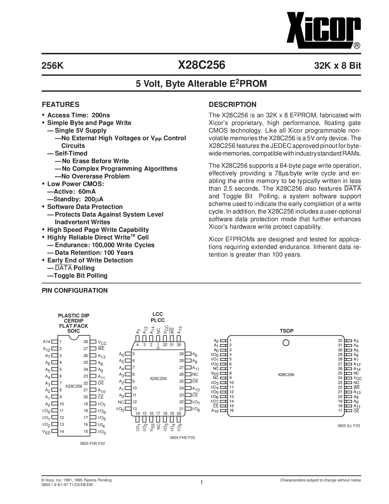 © xicor, 公司 1991, 1995 专利 待定 特性 主题 至 变更 无 通知