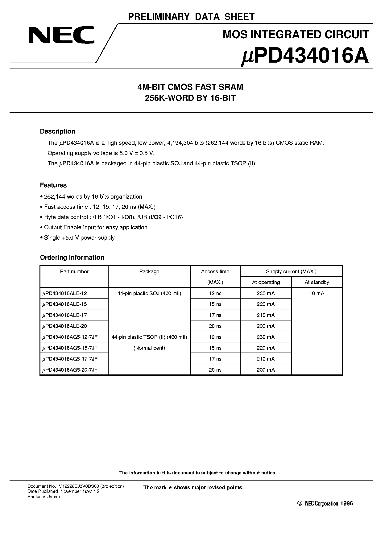 4M-BIT CMOS FAST SRAM 256K-WORD BY 16-BIT