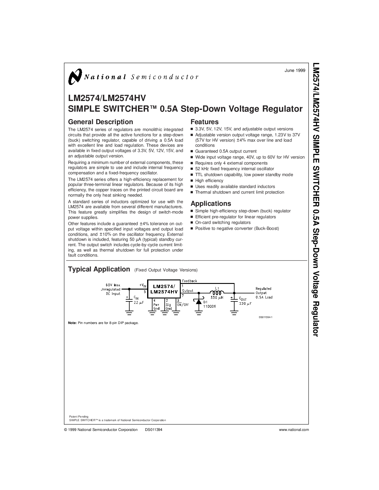 lm2574/lm2574hv 简单 切换器 0.5a 降压 电压 调节器