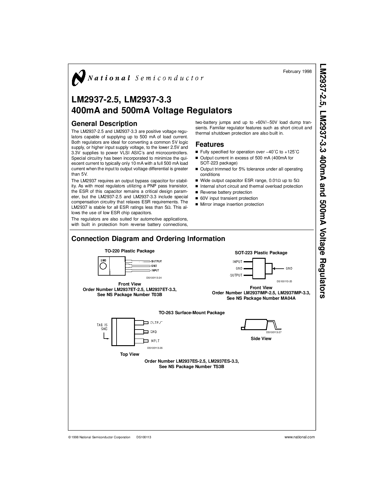 lm2937-2.5, lm2937-3.3 400mA 500mA 电压 调节器