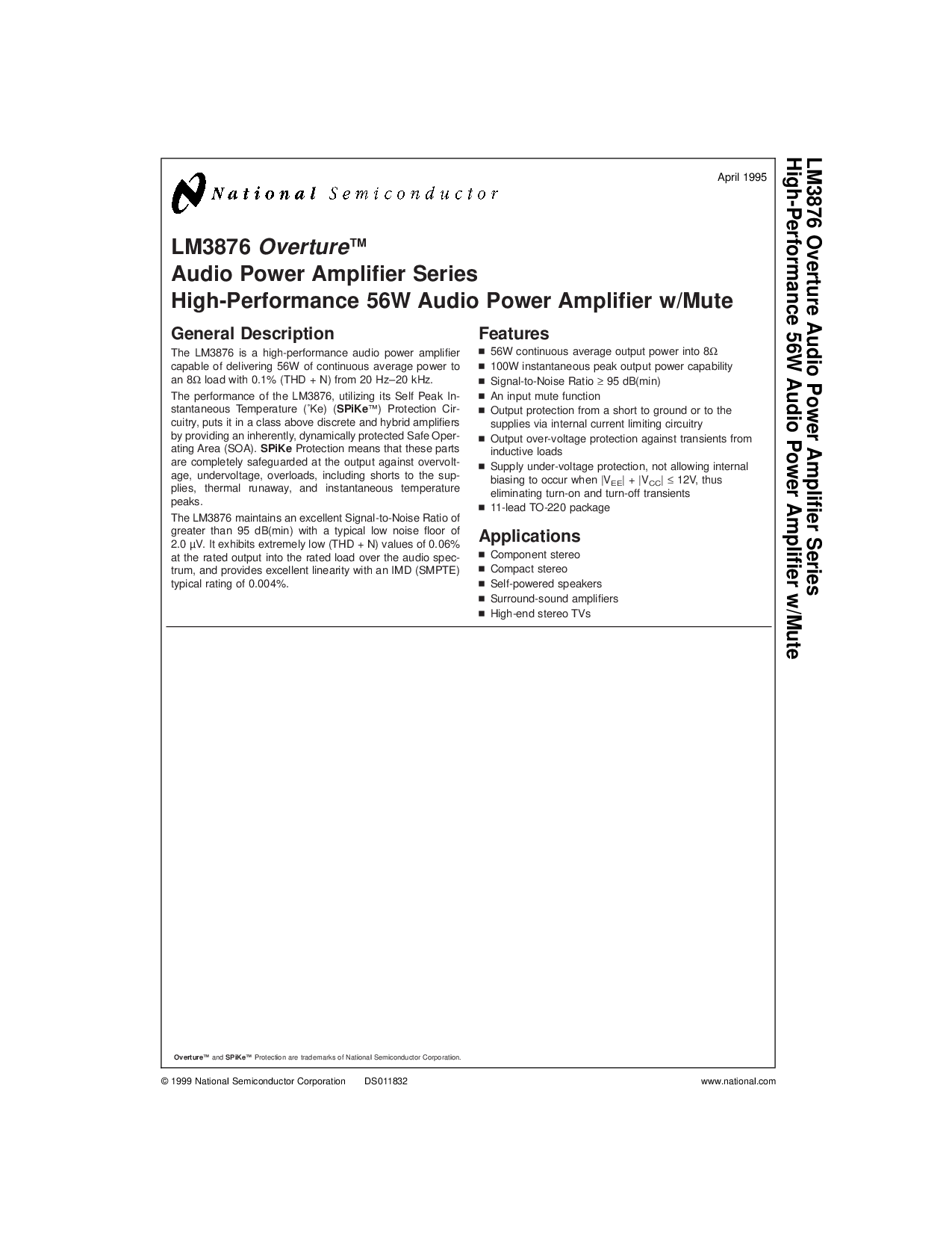 这 LM3876 是 一个 高性能 音频 电源 放大器