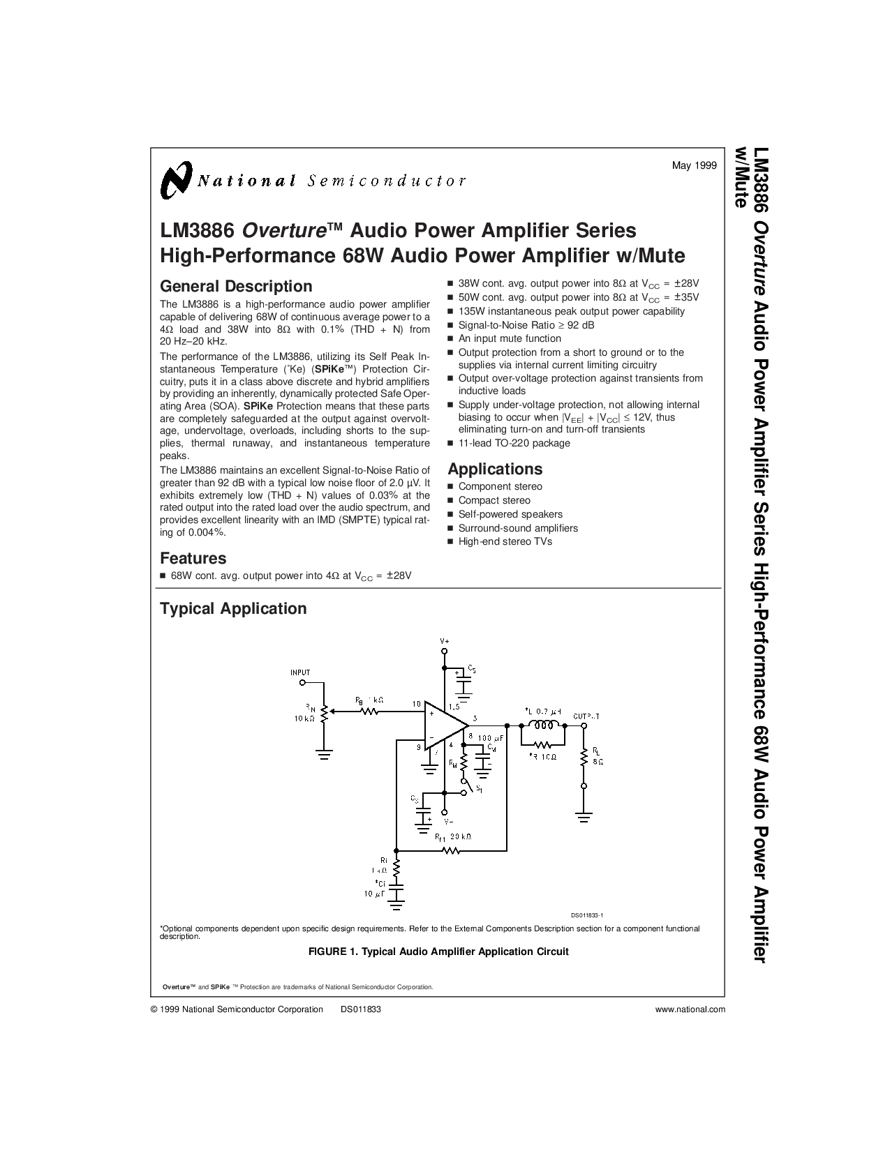 LM3886 Overture⑩ Audio Power Amplifier Series High-Performance 68W Audio Power Amplifier w/Mute