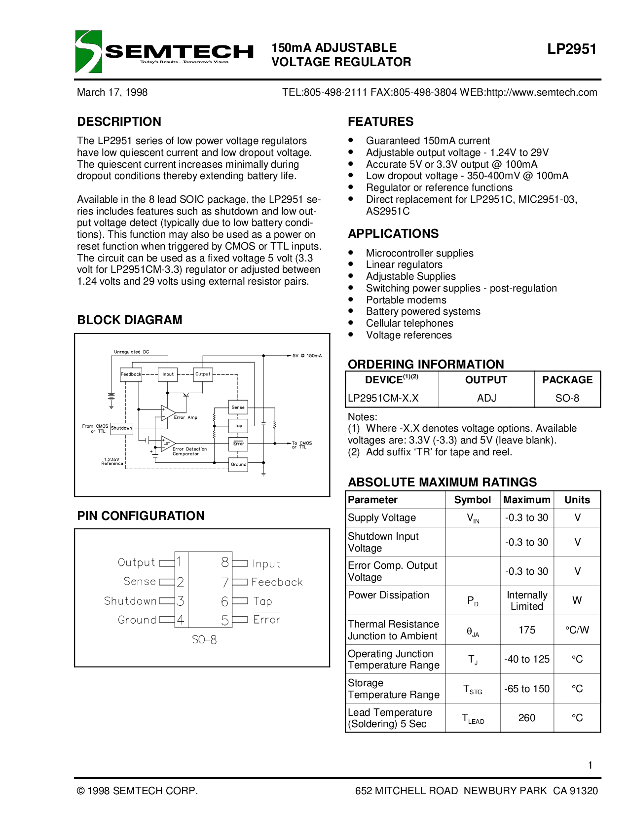 可用 入点 这 8 铅 soic 包装, 这 lp2951 se-
