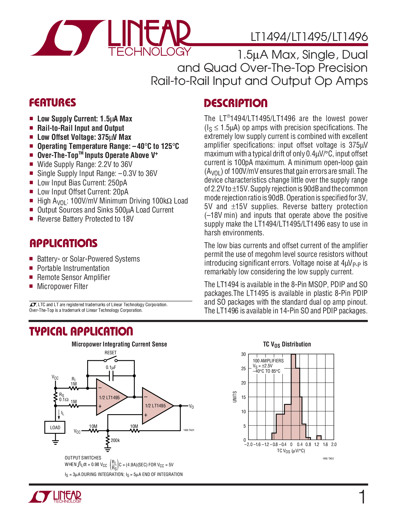 供应 制造 这 lt1494/lt1495/lt1496 容易 至 使用 入点