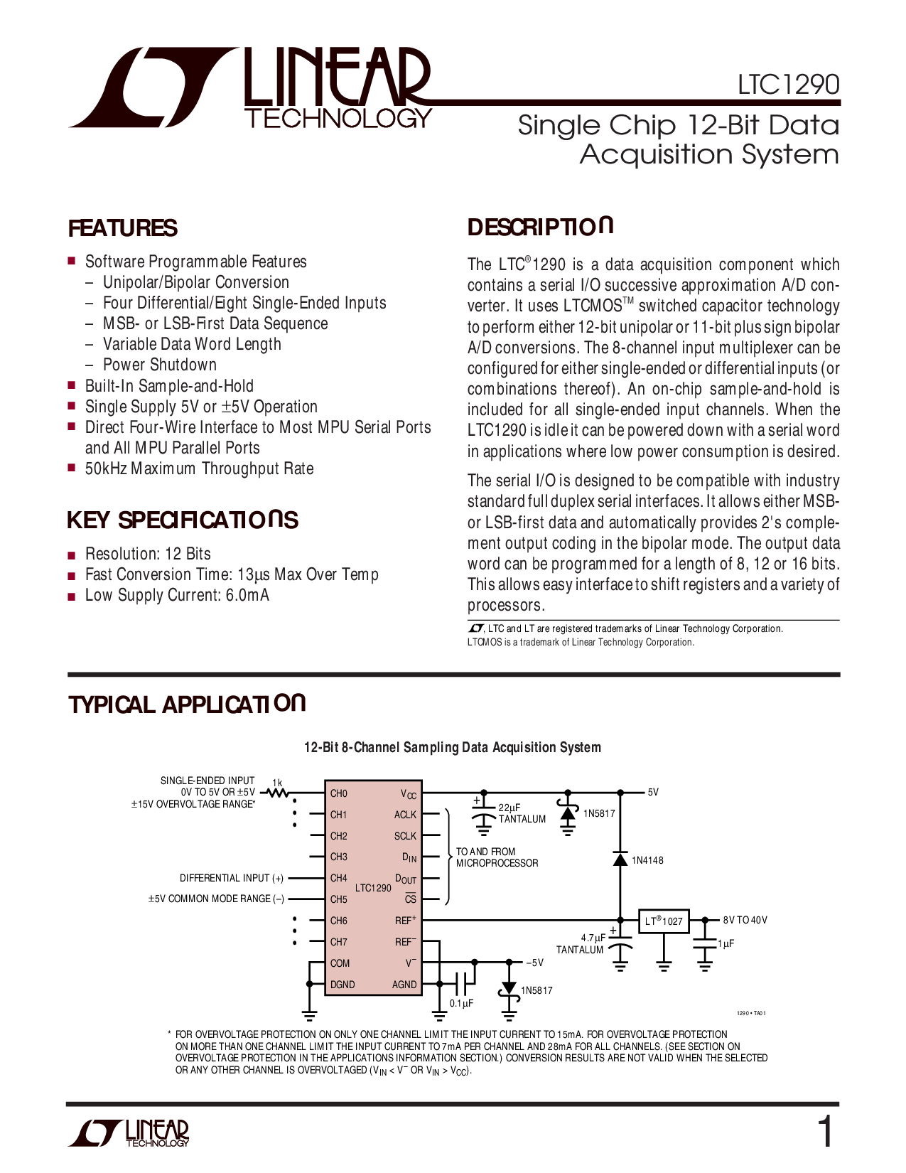 ltc1290 是 慢车 它 可以 是 通电 向下 与 一个 串行 字