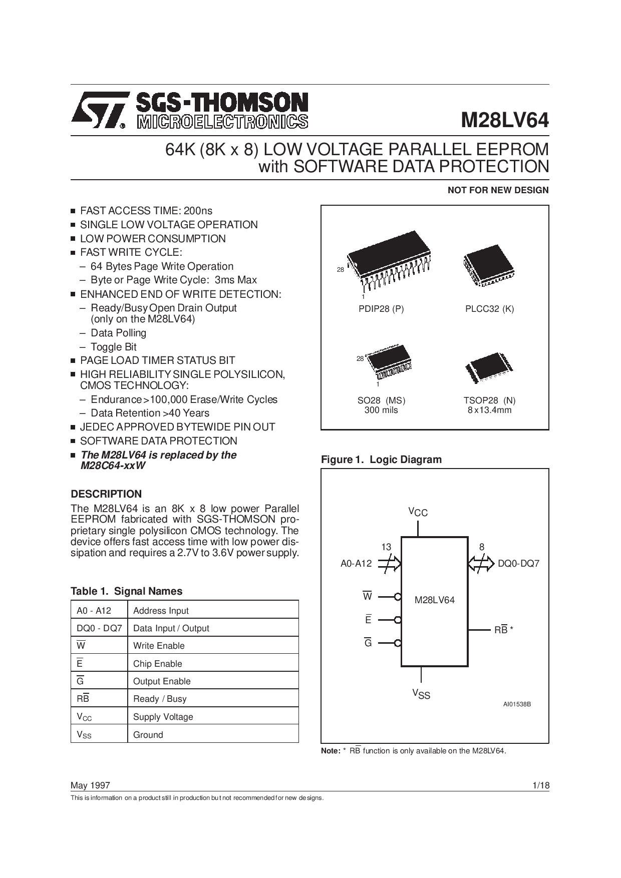 浏览型号M28LV64-250P1的Datasheet PDF文件第2页