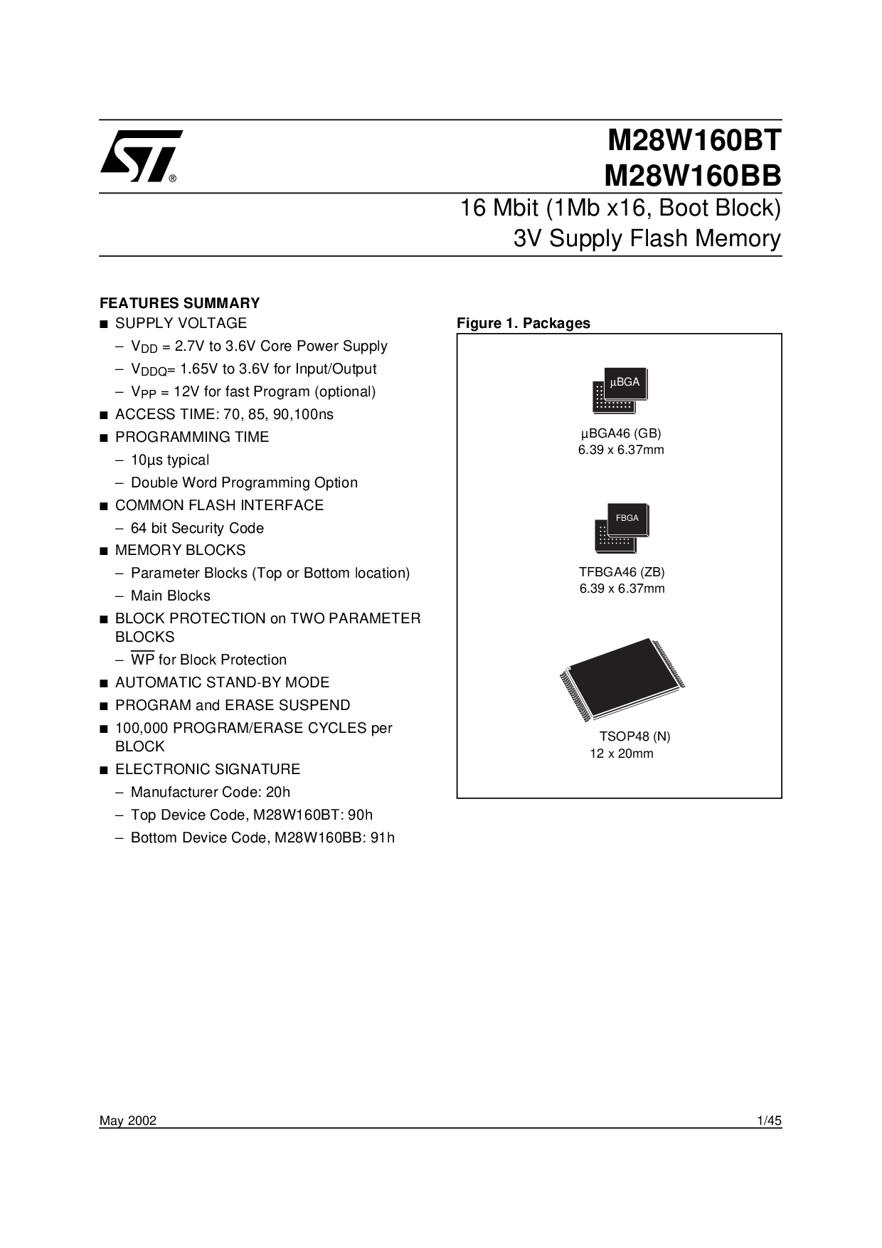 浏览型号M28W160BB100N6T的Datasheet PDF文件第2页