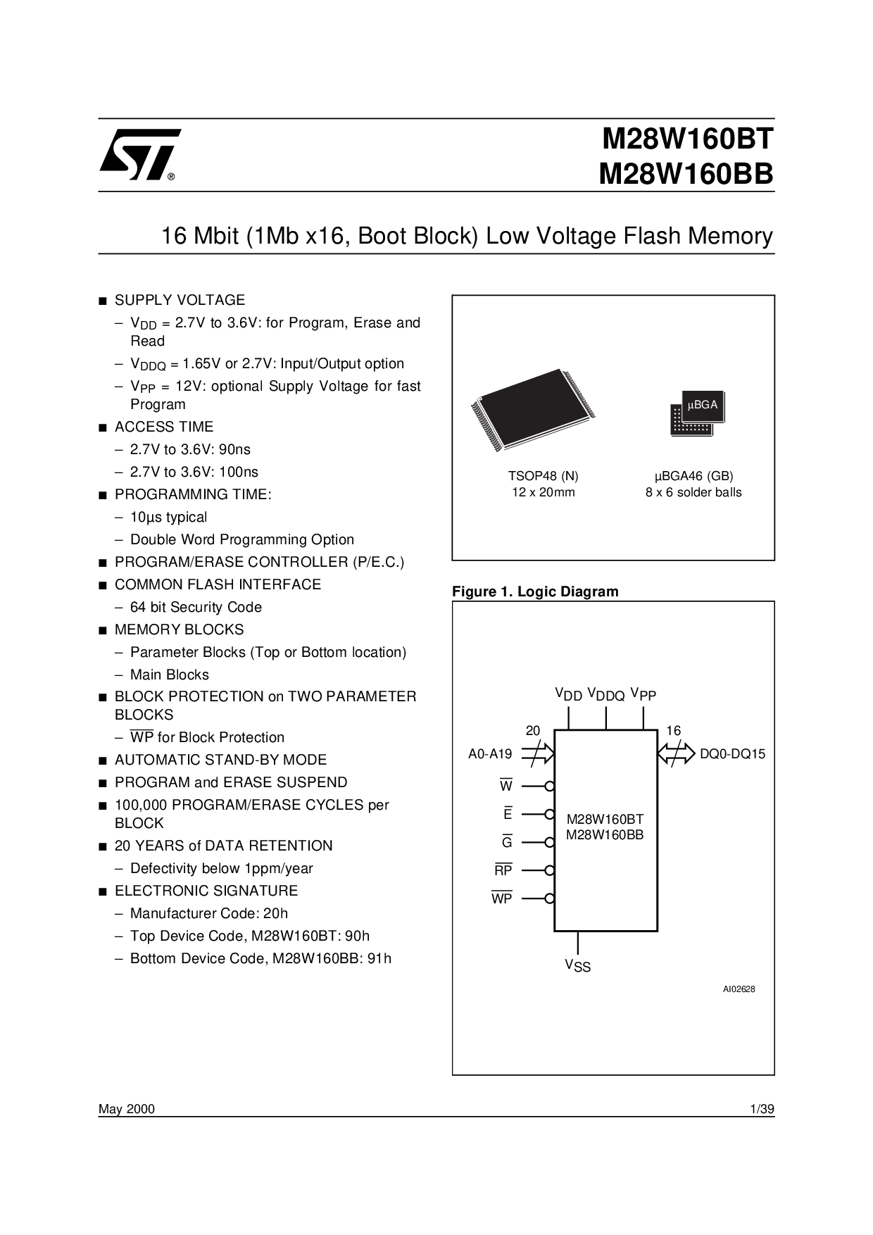 16 Mbit 1Mb x16, Boot Block Low Voltage Flash Memory