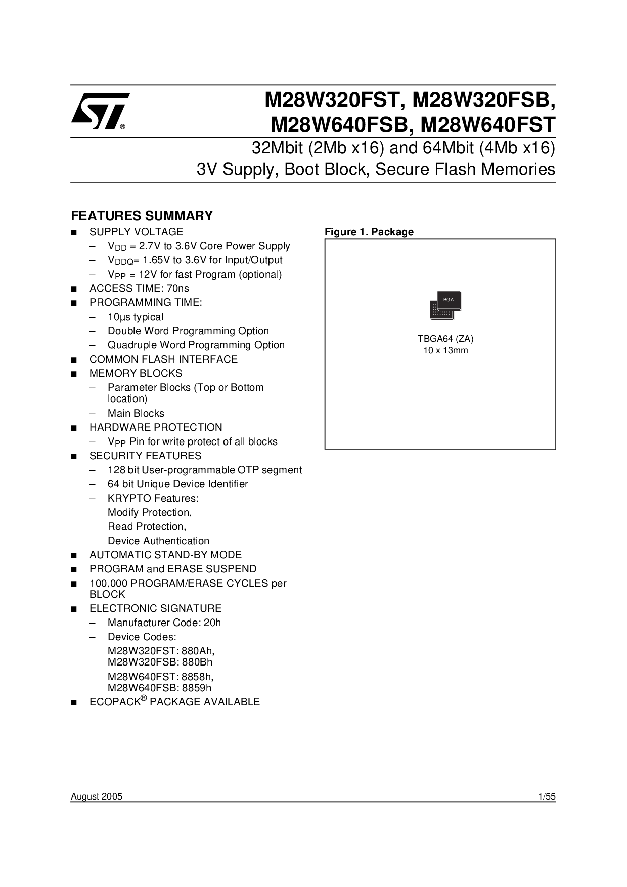 32Mbit (2Mb x16) and 64Mbit (4Mb x16) 3V Supply, Boot Block, Secure Flash Memories