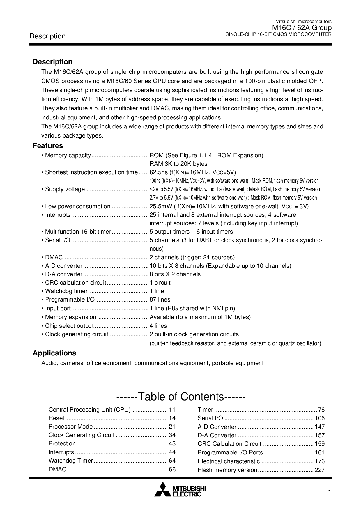 这 m16c/62a 集团 包括 一个 宽 范围 的 产品 与 不同的 内部 记忆 类型 和 尺码 和