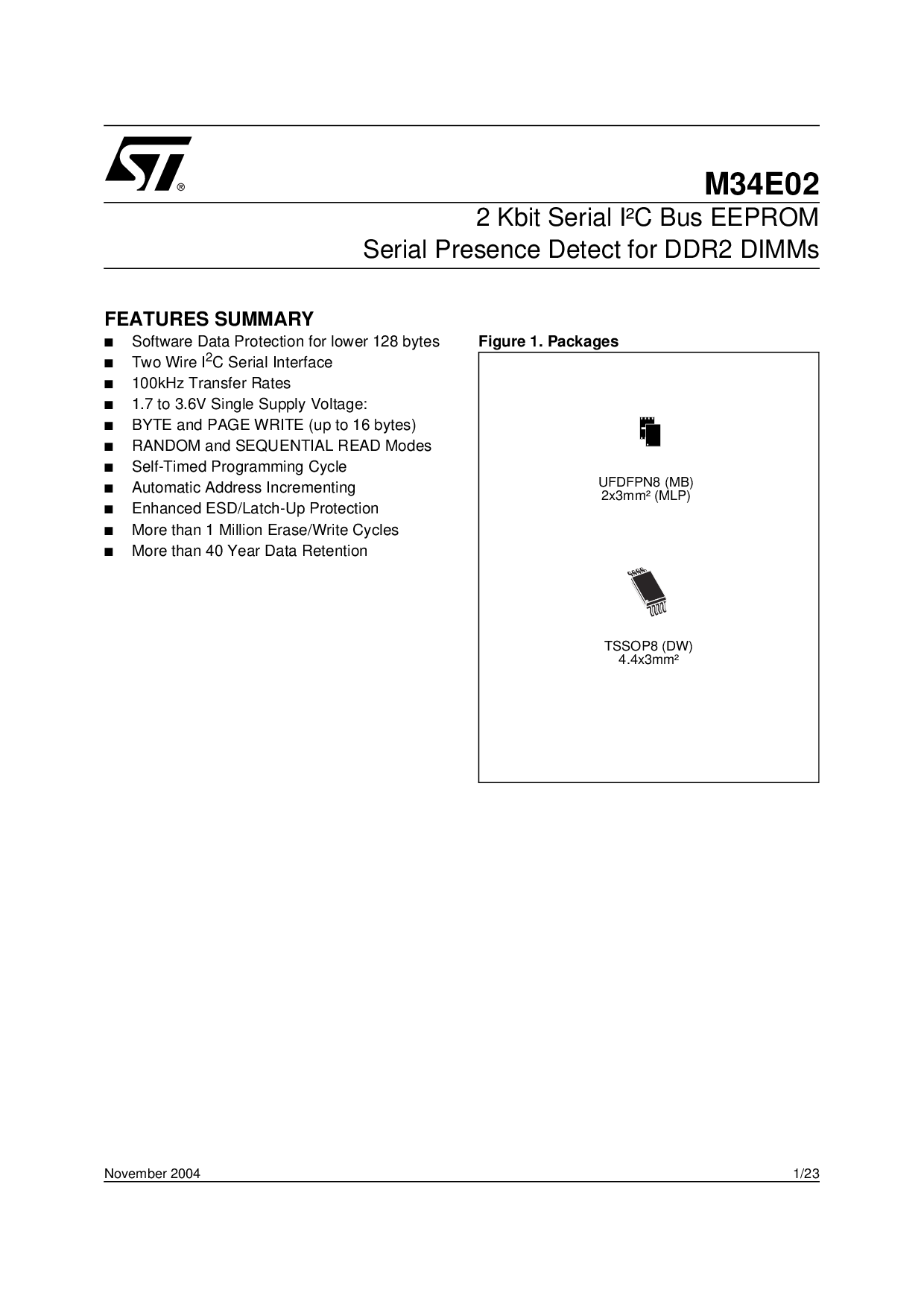 2 Kbit Serial IC Bus EEPROM Serial Presence Detect for DDR2 DIMMs
