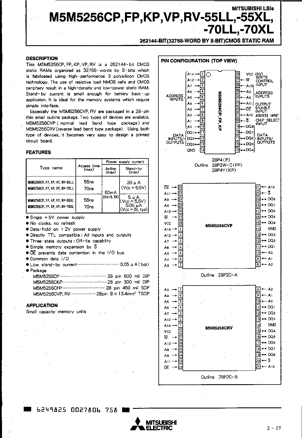 262144-BIT (32768-WORD BY 8-BIT) CMOS STATIC RAM