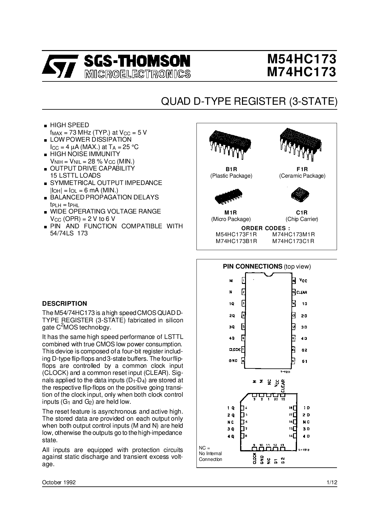 这 m54/74hc173 是 一个 高 速度CMOS 四边形 d-