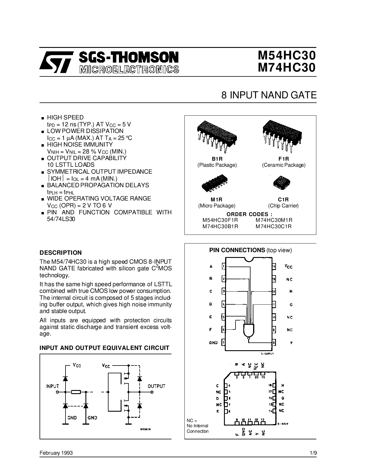 这 m54/74hc30 是 一个 高 速度 CMOS 8-输入