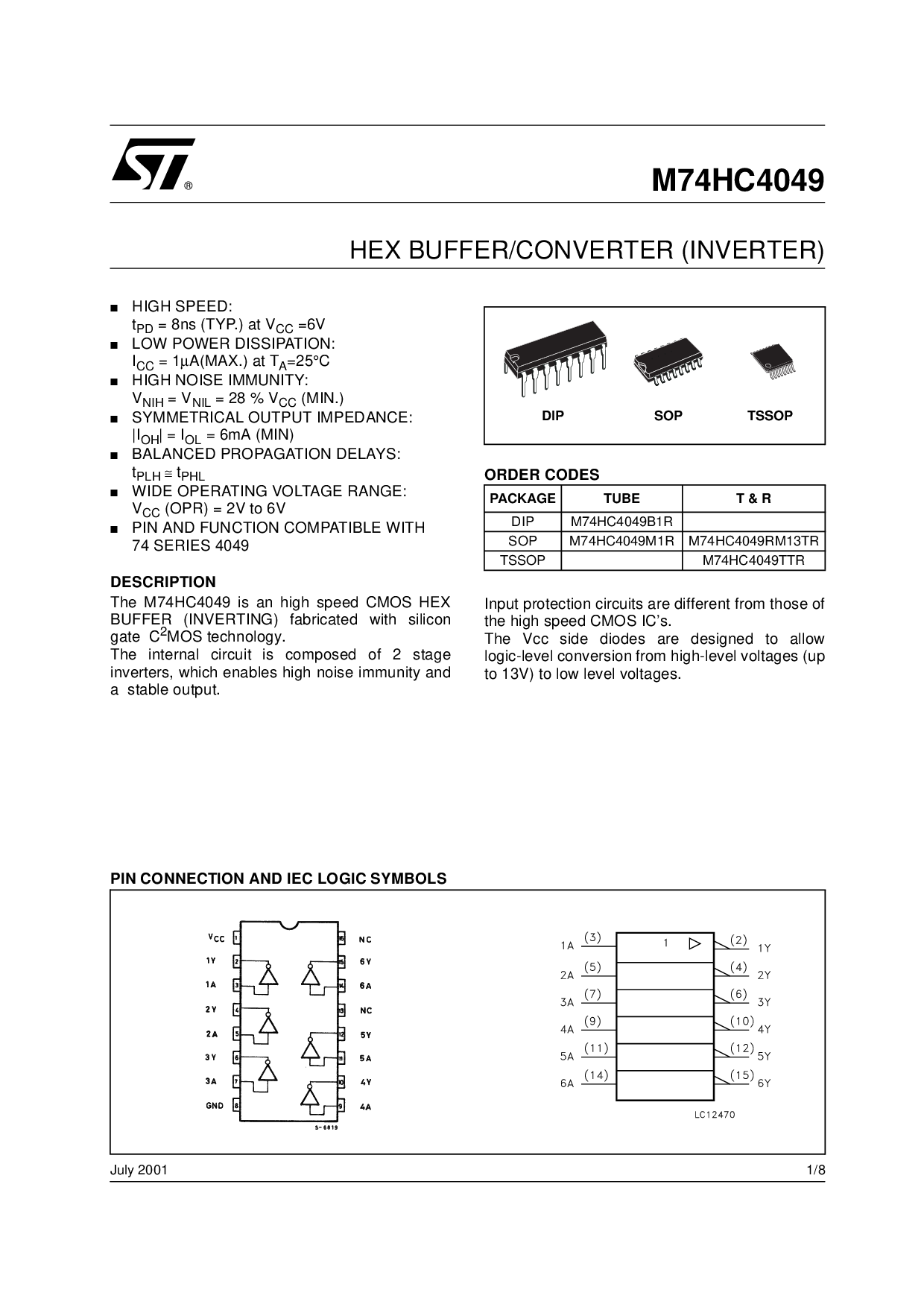 浏览型号M74HC4049B1R的Datasheet PDF文件第2页