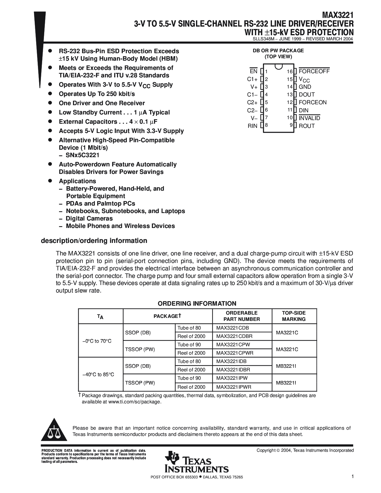 浏览型号MAX3221CPW的Datasheet PDF文件第2页