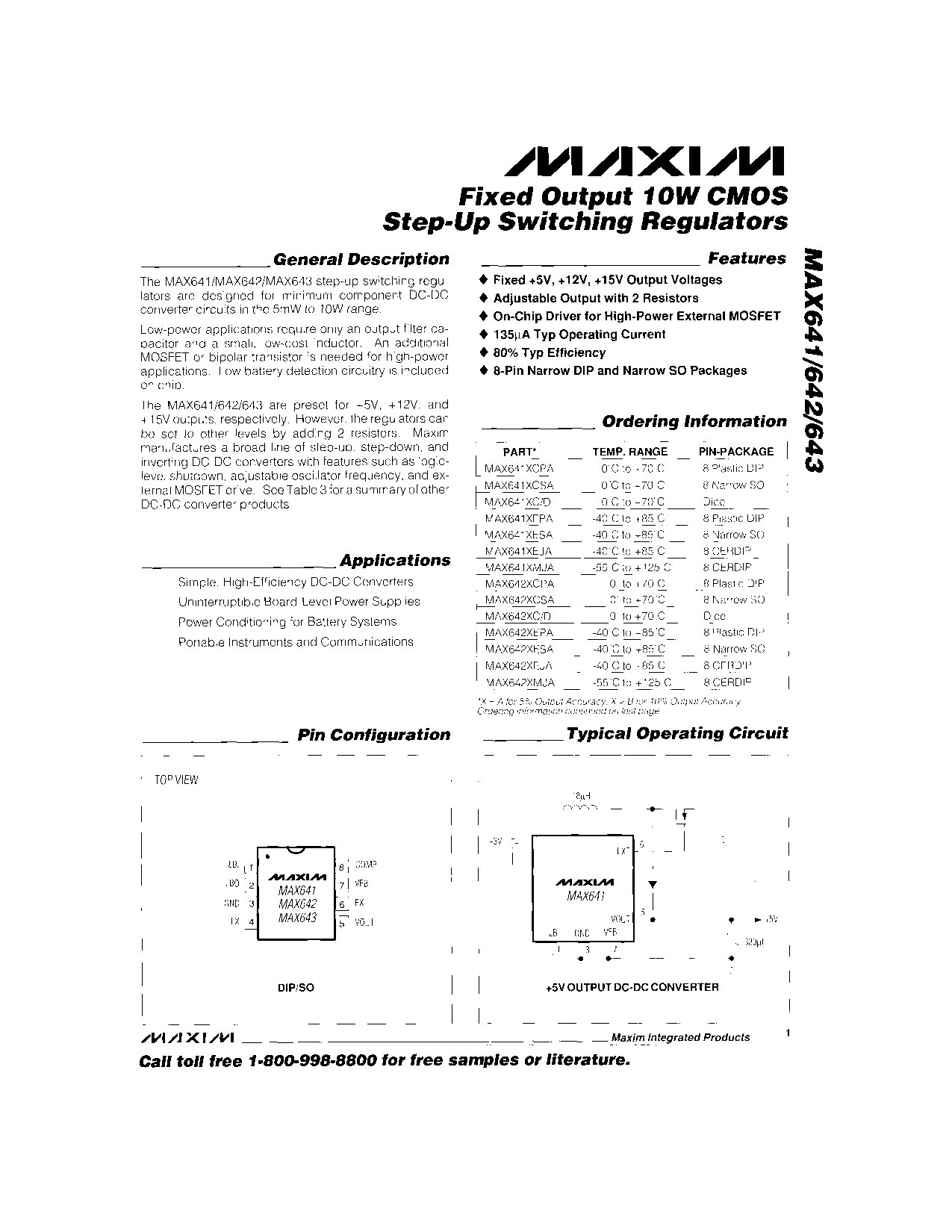 Fixed Output 10W CMOS Step-Up Switching Regulators