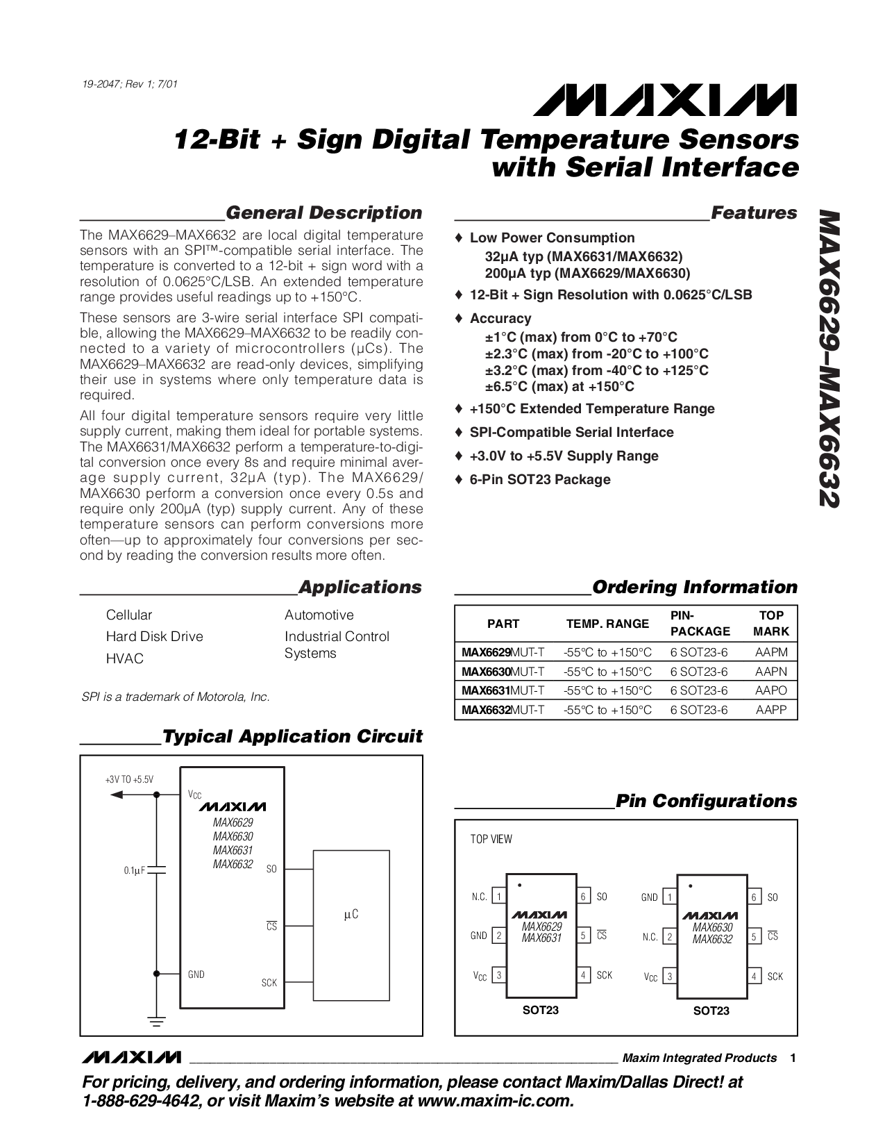 1-888-629-4642, 或 参观 马克西姆’s 网站 在 www.马克西姆-集成电路.com.