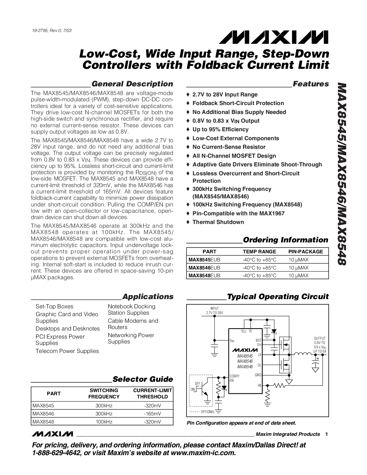 这 max8545/max8546/max8548 有 一个 宽 2.7v 至