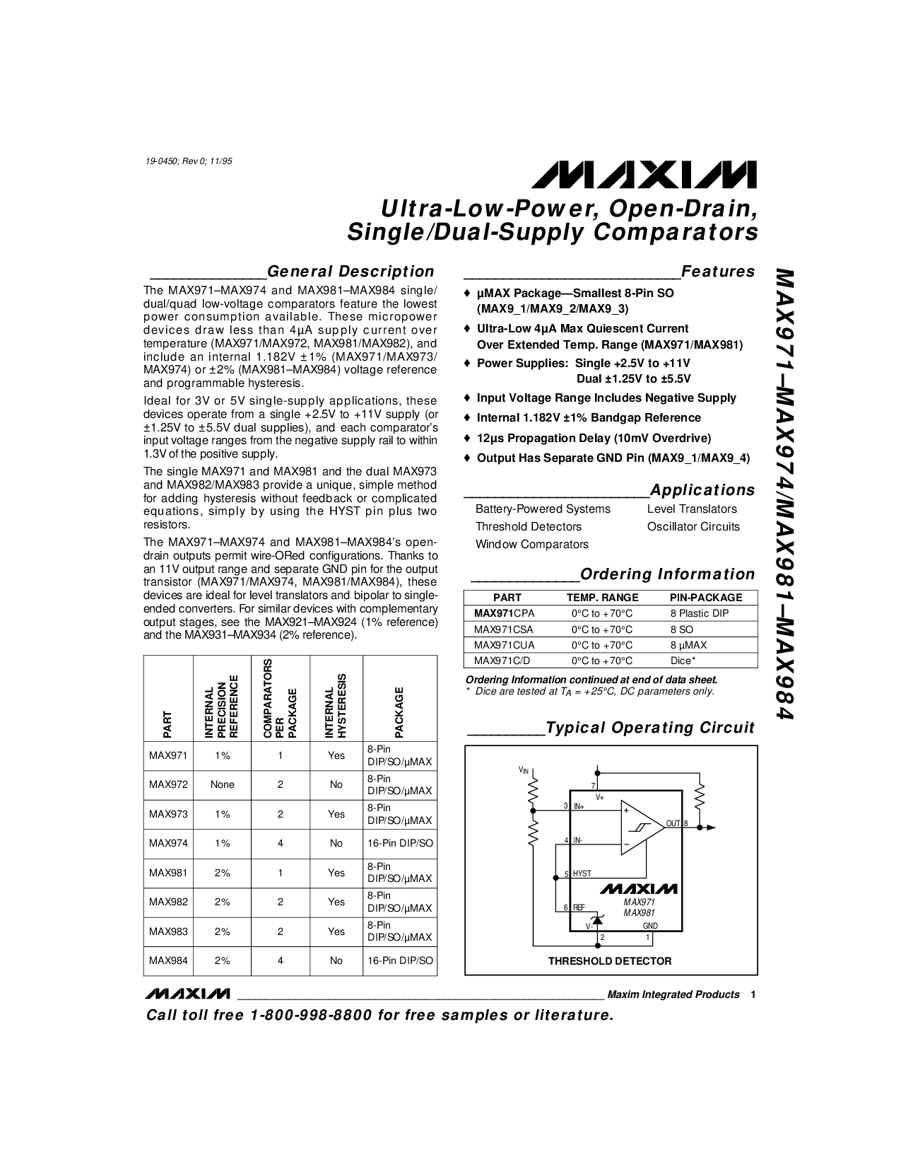 MAX971CUA 0°c 至 +70°c 8 µmax